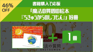 魔法の質問20周年プロジェクトおめでとうございます♪ ボードゲーム制作を心待ちにしてます。魔法の質問の絵本「ちきゅうからのしつもん」を地域の子どもたちや子育て中のカップルの方々と楽しみながら、質問力を高めていきたいです。いつもわくわくする海外からの配信やメルマガをありがとうございます。